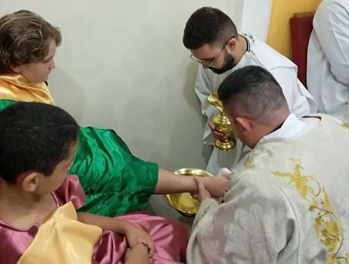 Padre André Ferreira lembrou o gesto de humildade de Cristo com os seus discípulos, antes de ser preso, condenado à morte e crucificado em uma sexta-feira em Jerusalém.