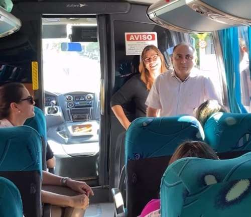 O prefeito de Carnaíba, no Sertão do Pajeú, Wamberg (Berg) Gomes (PSB), ao lado da secretária municipal de Educação, Melanea Freire, fez questão de acompanhar pessoalmente, na manhã desta terça-feira (26/08), o embarque de professores e profissionais da cultura rumo ao IX Congresso Internacional SESC de Arte/Educação, que acontecerá no Recife.